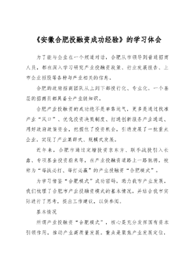 安徽合肥投融资成功经验.docx