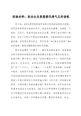 经验材料:政治生态复澄碧风清气正好扬帆.docx