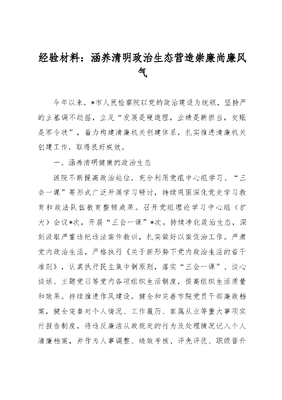 经验材料:涵养清明政治生态营造崇廉尚廉风气.docx