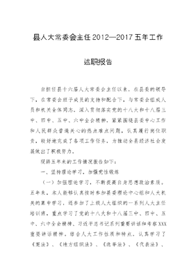 县人大常委会主任2012—2017五年工作述职报告.docx