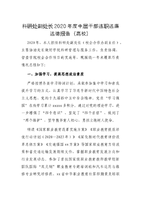科研处副处长2020年度中层干部述职述廉述德报告(高校).docx