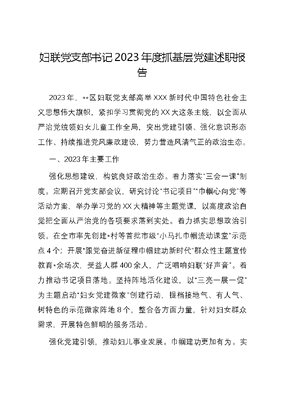 妇联党支部书记2023年度抓基层党建述职报告.docx