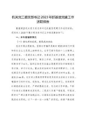 机关党工委支部书记2023年抓基层党建工作述职报告.docx
