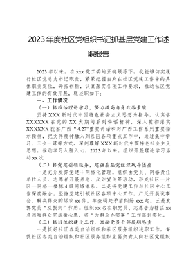 2023年度社区党组织书记抓基层党建工作述职报告.docx