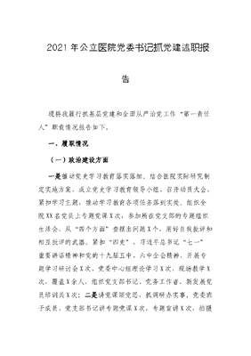 2021年公立医院党委书记抓党建述职报告.docx