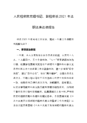 人民检察院党组书记、副检察长2021年述职述廉述德报告.docx
