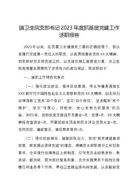 镇卫生院支部书记2023年度抓基层党建工作述职报告.docx