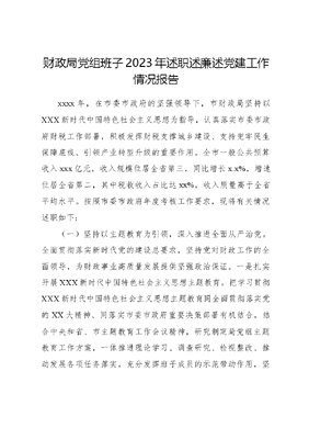 财政局党组班子2023年述职述廉述党建工作情况报告.docx
