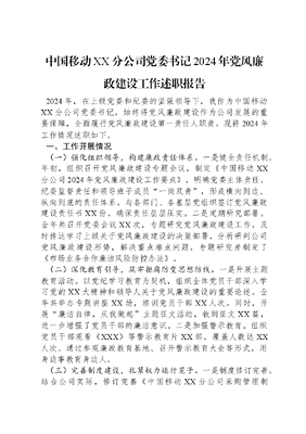 中国移动XX分公司党委书记2024年党风廉政建设工作述职报告.docx