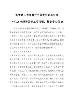 抓党建工作和履行主体责任述职报告--中共XX市经开区党工委书记、管委会主任.docx