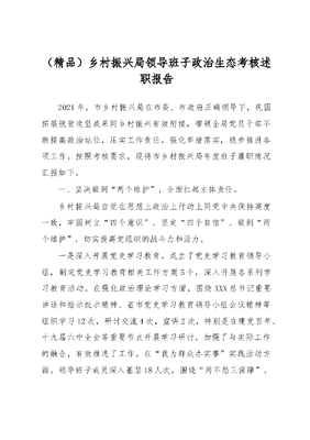 乡村振兴局领导班子政治生态考核述职报告.docx