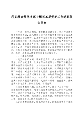 税务稽查局党支部书记抓基层党建工作述职报告范文.docx