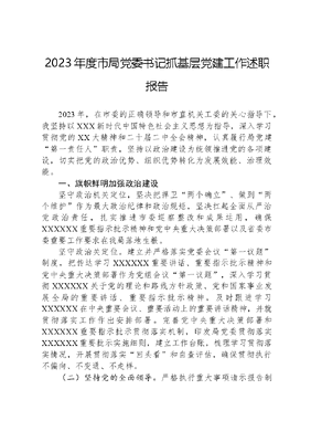 2023年度市局党委书记抓基层党建工作述职报告.docx