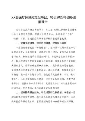 XX县医疗保障局党组书记、局长2023年述职述廉报告.docx
