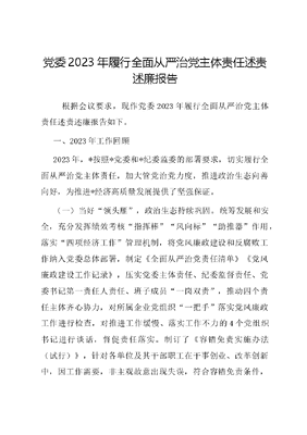 党委2023年履行全面从严治党主体责任述责述廉报告.docx