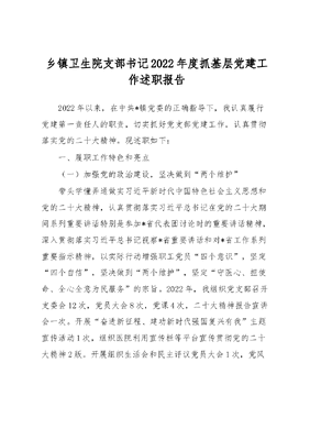 乡镇卫生院支部书记2022年度抓基层党建工作述职报告.docx