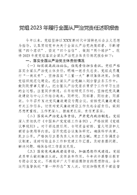 党组2023年履行全面从严治党责任述职报告.docx