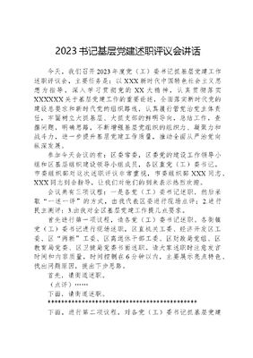 2023书记基层党建述职评议会讲话.docx
