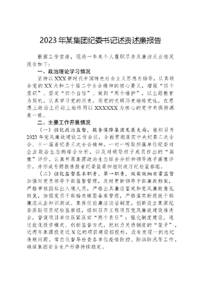 2023年某集团纪委书记述责述廉报告.docx