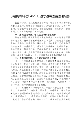 乡镇领导干部2023年述学述职述廉述法报告.docx