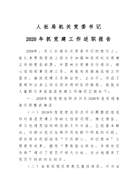 人社局机关党委书记2020年抓党建工作述职报告.docx