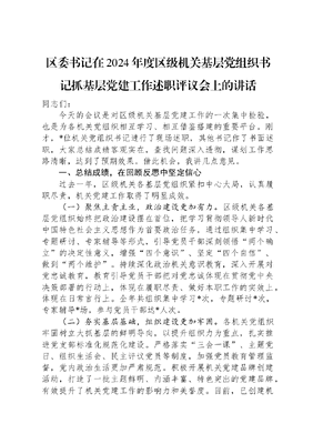 区委书记在2024年度区级机关基层党组织书记抓基层党建工作述职评议会上的讲话.docx