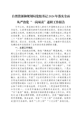 自然资源和规划局党组书记2024年落实全面从严治党“一岗双责”述职工作报告.docx