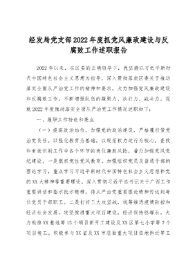 经发局党支部2022年度抓党风廉政建设与反腐败工作述职报告.docx