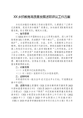 XX乡抓教育高质量发展述职评议工作方案.docx