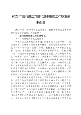 2023年履行基层党建和意识形态工作职责述职报告.docx