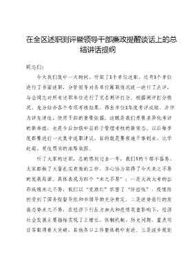 在全区述职测评暨领导干部廉政提醒谈话上的总结讲话提纲.docx