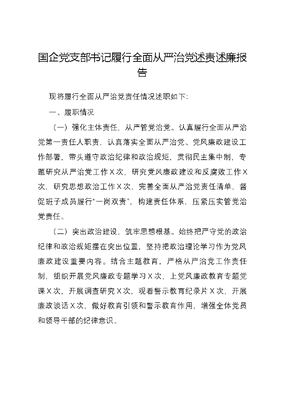 国企党支部书记履行全面从严治党述责述廉报告.docx