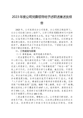2023年度公司党委领导班子述职述廉述责报告.docx
