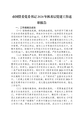市国资委党委书记2024年抓基层党建工作述职报告.docx