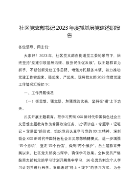 社区党支部书记2023年度抓基层党建述职报告.docx