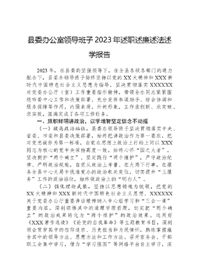 县委办公室领导班子2023年述职述廉述法述学报告.docx