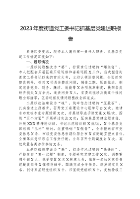 2023年度街道党工委书记抓基层党建述职报告.docx