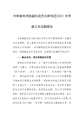 市科学技术协会机关党支部书记2021年党建工作述职报告.docx
