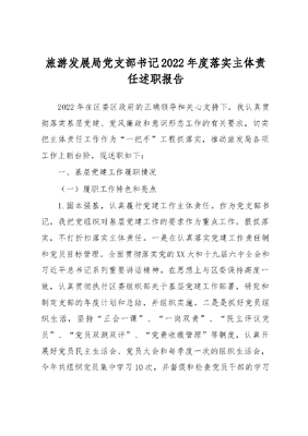 旅游发展局党支部书记2022年度落实主体责任述职报告.docx