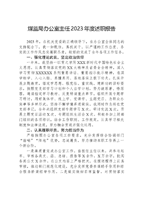 煤监局办公室主任2023年度述职报告.docx