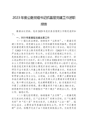 2023年度公路党组书记抓基层党建工作述职报告.docx