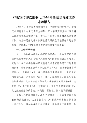 市委宣传部党组书记2024年抓基层党建工作述职报告.docx