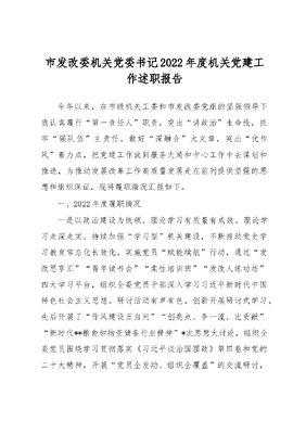 市发改委机关党委书记2022年度机关党建工作述职报告.docx