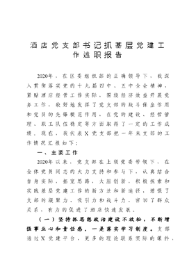 年终12:酒店党支部书记抓基层党建工作述职报告.docx