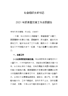 社会组织支部书记2021年抓基层党建工作述职报告.docx