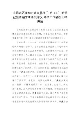 在县市区委和市委直属部门 党(工)委书记抓基层党建述职评议 考核工作会议上的讲话.docx