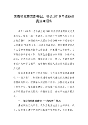 高校党总支部书记、校长2019年述职述责述廉报告.docx