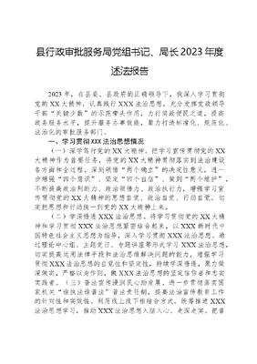 县行政审批服务局党组书记、局长2023年度述法报告.docx