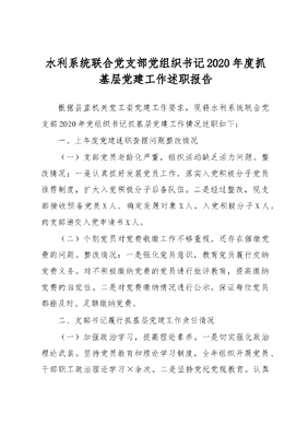 水利系统联合党支部党组织书记2020年度抓基层党建工作述职报告.docx