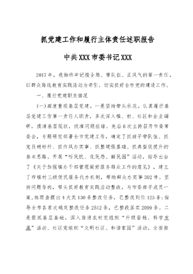 抓党建工作和履行主体责任述职报告--中共XXX市委书记.docx